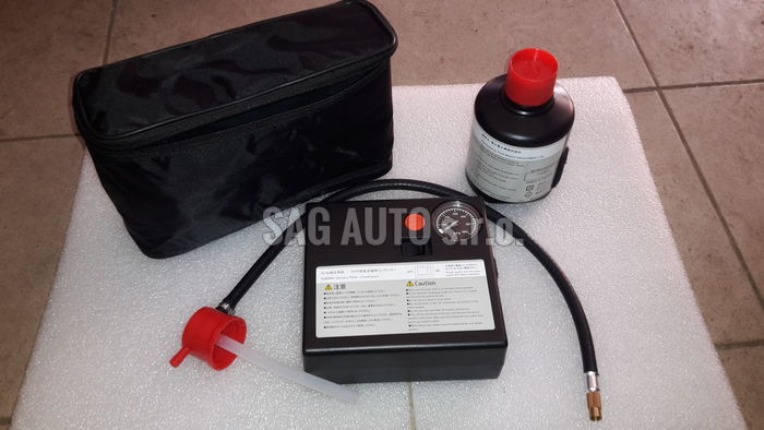 Set: kompresor do automobilu s lepící sadou + pouzdro.